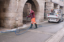 Pour garder la ville propre, trois personnes sillonnent quotidiennement les rues des Petit et Grand-Bayonne et de Saint-Esprit pour ramasser ce qui ne l'a pas été et nettoyer les mictions.