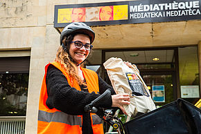 Morgane : l'objectif de ces actions est d'aller vers les publics qui ne peuvent venir jusqu'à nous. Elles se font souvent en partenariat avec des institutions telles que l'administration pénitentiaire et le Service pénitentiaire d'insertion et de prévention puisque nous intervenons tous les quinze jours à la bibliothèque de la Maison d'arrêt de Bayonne pour proposer des prêts d'ouvrages. En parallèle, nous organisons aussi des rencontres avec des auteurs ou des artistes. Ces propositions sont stimulantes pour le maintien d'une vie sociale. Au nombre des actions hors les murs, j'interviens également dans les crèches et ma binôme se déplace dans la plupart des maisons de retraite de la ville. Ces déplacements sont en outre écologiques car ils se font à pied ou en vélo-cargo ! Nous disposons également d'un autre véhicule, la Minithèque - un bibliobus à destination du jeune public, pour nous rendre dans les écoles et quartiers excentrés comme le Polo-Beyris ou le Séqué, mais en raison des conditions sanitaires et de la promiscuité à bord, ce service de la Médiathèque n'a pas encore repris. Une autre action très importante est le portage à domicile. Mis en place au profit d'une trentaine de personnes, dont les noms nous sont régulièrement communiqués par le Centre communal d'action sociale, ou par le bouche-à-oreille, ce service s'est avéré essentiel pendant la pandémie.