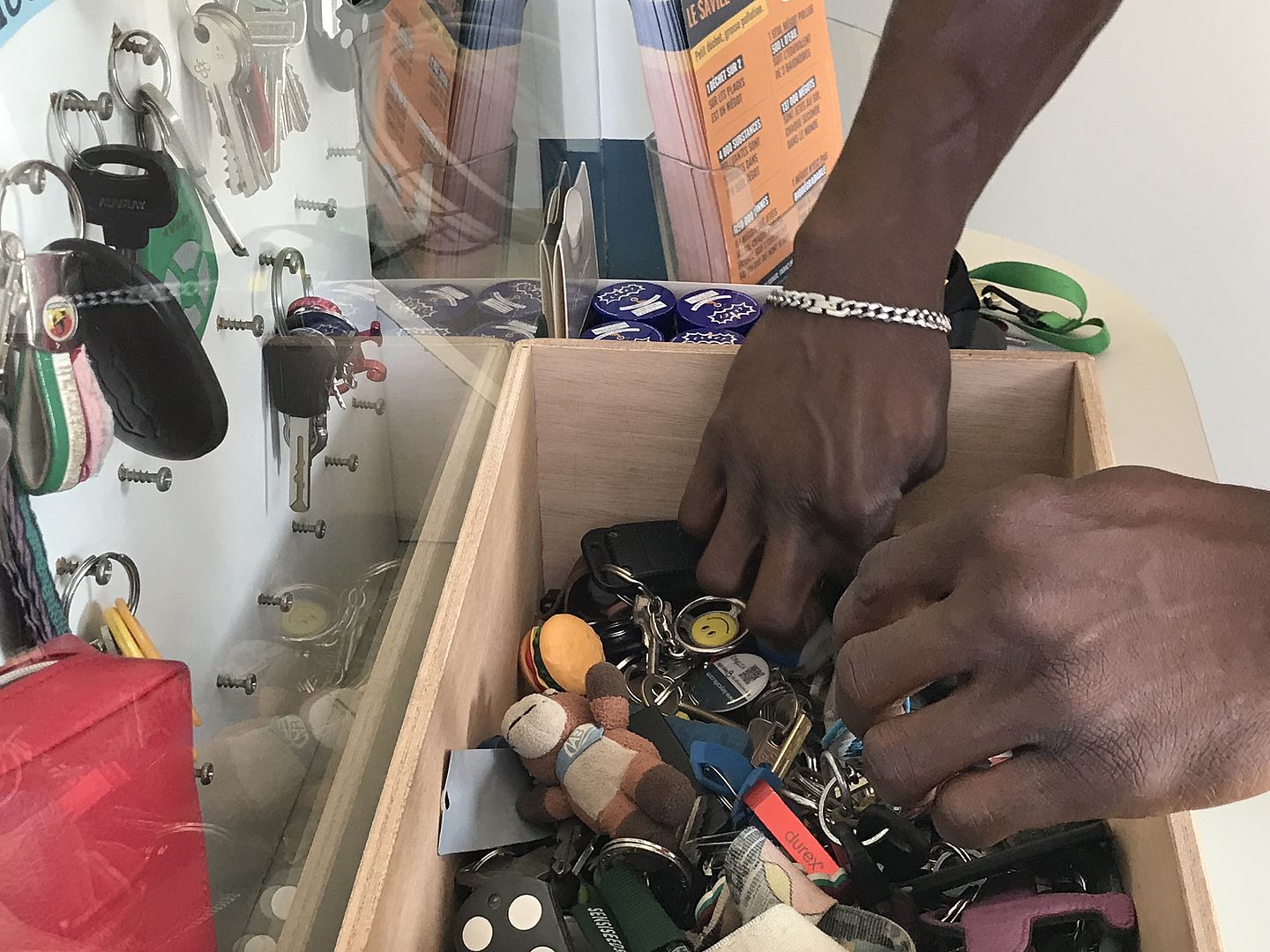 Les objets trouvés sont quant à eux classés dans une armoire, et des boîtes dédiées, tandis que les clés sont accessibles dès l'espace d'accueil. Les objets dont la valeur est estimée à moins de 300€ sont conservés six mois, les autres jusqu'à un an. Ils sont ensuite donnés à des associations caritatives ou au service du domaine public.