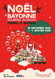 Rendez-vous du 28 novembre 2025 au 4 janvier 2026 pour profiter des animations et de la magie de Noël à Bayonne. Des week-ends thématiques, un marché de Noël, une forêt lumineuse de rennes et de biche, le village des enfants, des parades lumineuses, la grande roue, le sapin manège, etc. Découvrez le programme.