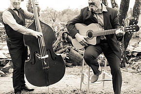 Les Fichus Calotins vous font voyager au son de la guitare et de la contrebasse dans ce nouvel écrin architectural : la place Michèle et André Pintat.